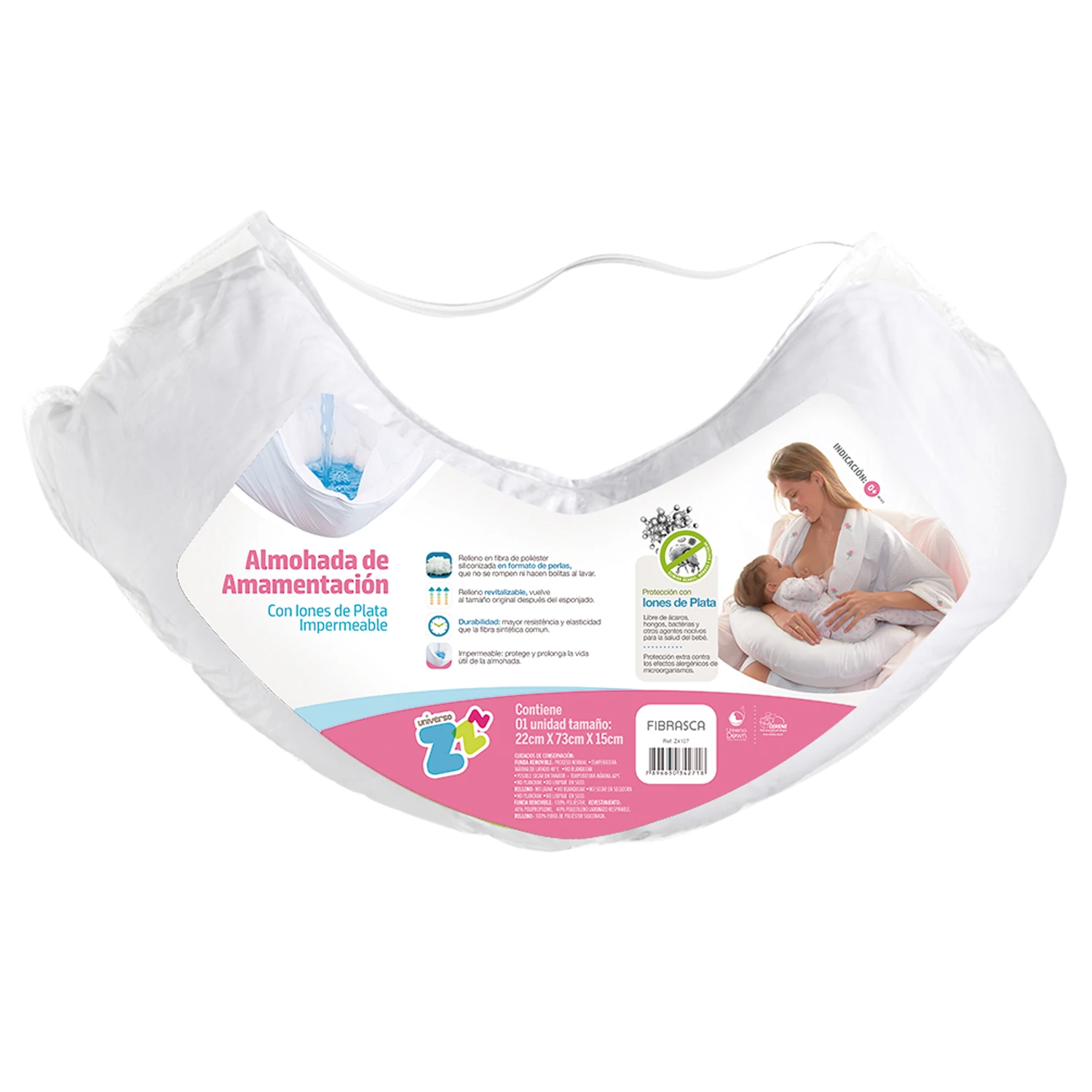 La mejor ayuda para la lactancia. Evita el dolor de espalda. Para bebés hasta 6 meses. Ahora con tela de iones de plata que elimina ácaros, hongos y bacterias. Funda Removible: 100% Poliester, Revestimiento: 60% Polipropileno, 40% Polietileno Laminado Respirable, Relleno: 100% Fibra de Poliester Siliconada.